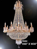 Whether placed in an entryway or foyer, these magnificent chandeliers make the ultimate statement. True to the Empire originals, these wonderful chandeliers are made with the finest materials and are fashioned in the same manner that European artisans have used for generations. Dressed with 100% crystal, this chandelier is characteristic of the grand chandeliers which decorated the finest Chateaux and Palaces across Europe. They reflect an era of class and elegance, and are sure to lend a special atmosphere in every home.Assembly Required Size: H50" W30" Lights: 15 Lights